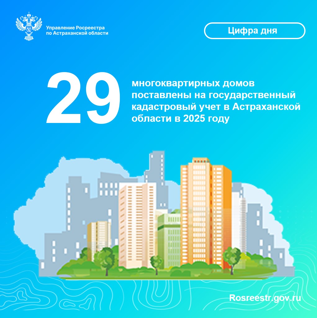 «В 2025 году Управлением Росреестра по Астраханской области на государственный кадастровый учет поставлены 29 многоквартирных домов, общей площадью 244772 кв.м. В целом количество оформленных домов за весь предыдущий год превысило аналогичные показатели 2024 года на 38%: в 2024 году был учтен 21 многоквартирный дом», — сообщила заместитель руководителя Управления Росреестра по Астраханской области Татьяна Гук.